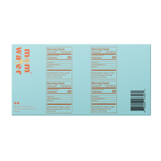 The Mom Squad is in Vacation Mode. Grab your gals, pack the car, and Escape From Carbonation with Susan, Nancy, Kathy & Mary. This 8-pack includes two of each flavor. Mom Water has zero sugar, zero carbs, and no artificial flavors or preservatives.
